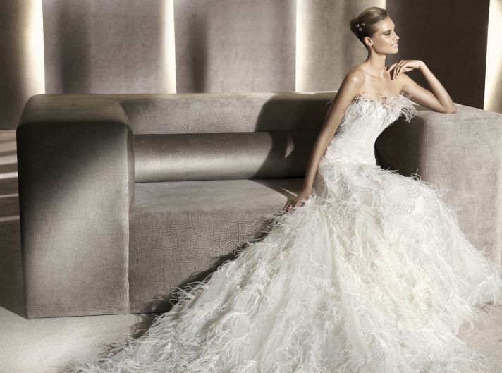 There is something about feathers that I feel like gives a dress a fun and flirty personality. They look great in pictures and definitely are a fabulous party dress for the reception! I like to see feathers used in wedding decor, but when the bride has them on her dress, it definitely has a WOW factor! I personally am a fan of unique wedding dresses. Dresses with plumage definitely have my vote!